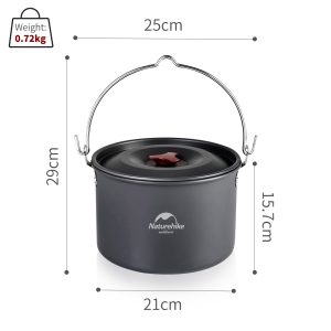 4-6 Persons Aluminum Alloy Hanging Pot is a lightweight, durable, and efficient cookware solution designed for camping, backpacking, overlanding, and group outdoor meals. Engineered for fast heating, easy cleaning, and long-term reliability, it provides a dependable outdoor kitchen experience for both everyday campers and seasoned explorers. Its non stick performance, large capacity, and optimized heat distribution make it an essential tool for cooking in the wild.
