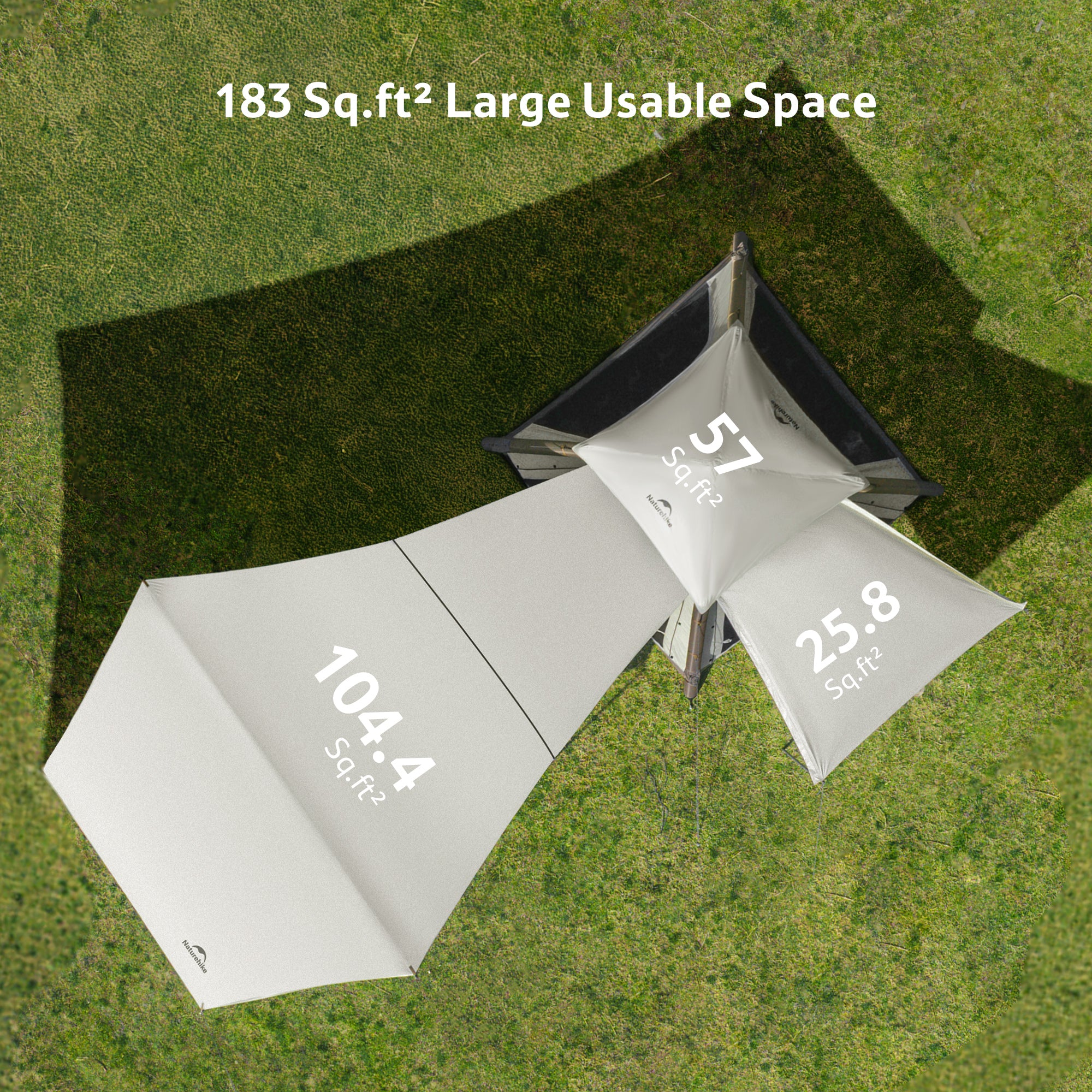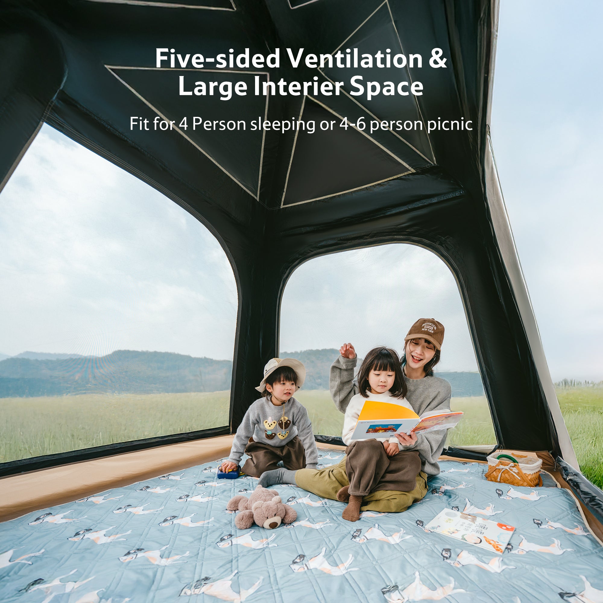 - Spacious Interior – Comfortably sleeps 3–4 adults. When paired with the included canopy, the total activity space expands to 183 sq ft, providing enough room for 8–10 people to relax, gather, and enjoy the outdoors.