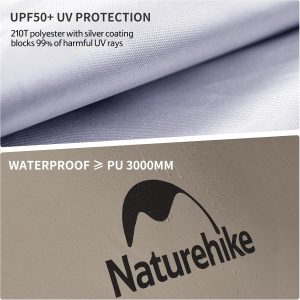- Waterproof & Sun Protection: Made from 210T polyester with silver coating, the tent offers UPF50+ sun protection and waterproofing up to 3000mm, ensuring you stay dry and protected.