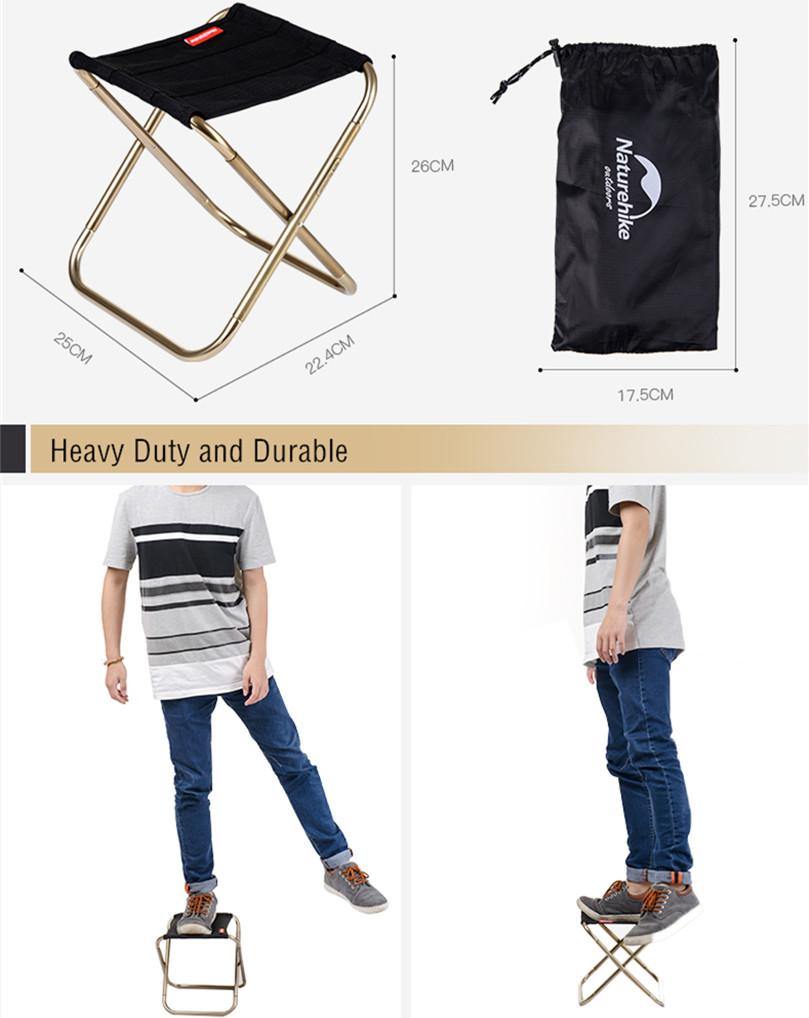 - ??STRONG & STURDY ??Made of aluminum alloy bracket +420D Oxford cloth. Camping Folding Stool is ultralight (only it is only 270g). Outdoor Stool can be carried by hand or put in the bags, supports up to 75kg.
